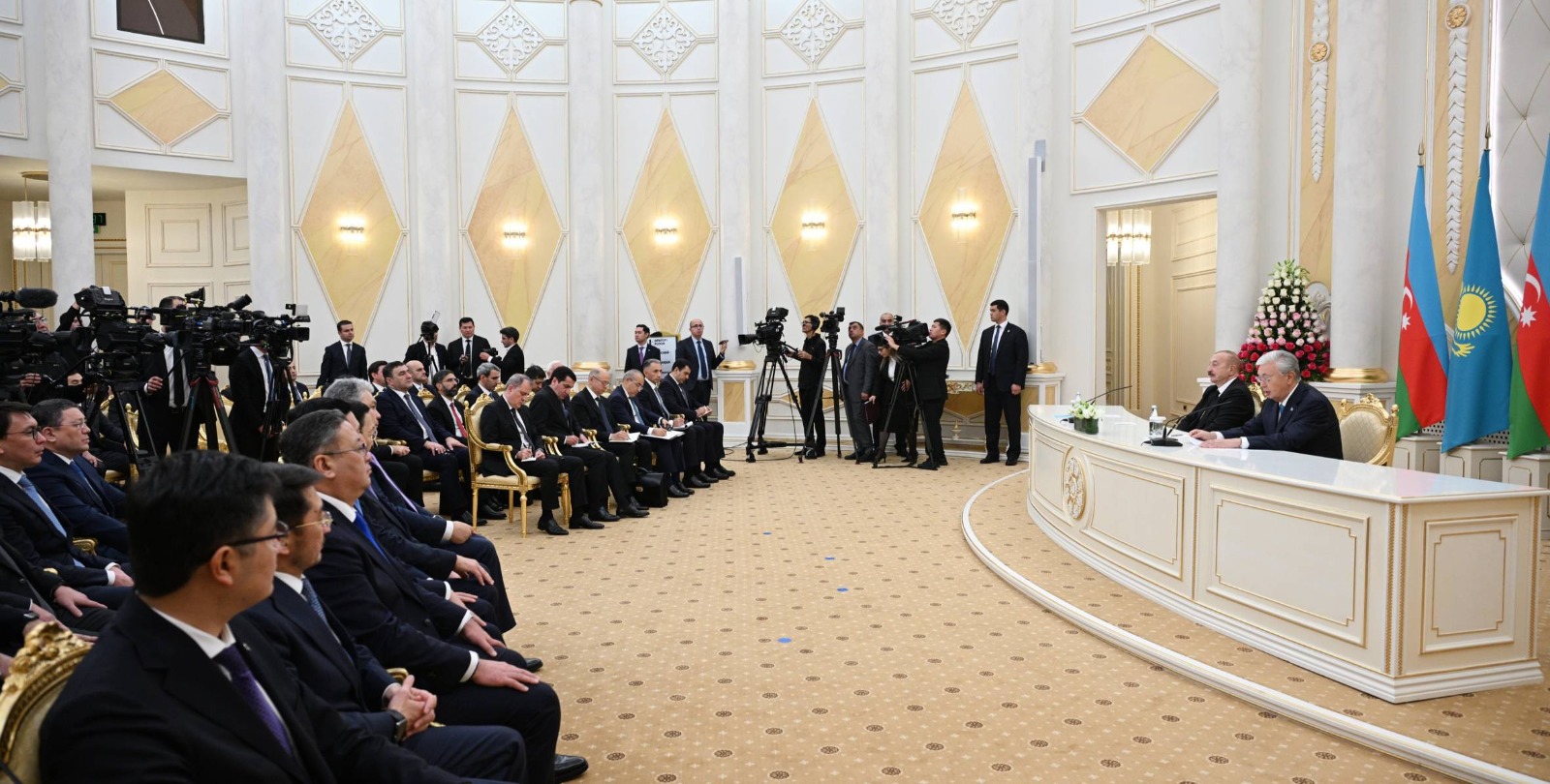 Prezident İlham Əliyev çıxışına Qazaxıstan Prezidentinə səmimi qəbula və qonaqpərvərliyə görə təşəkkür edərək başlayıb. Dövlət başçısı qeyd edib ki, Qazaxıstana etdiyi hər səfərdə bu ölkənin Prezident Tokayevin müdrik rəhbərliyi altında əldə etdiyi inkişafı və modernləşməni aydın şəkildə müşahidə edir.