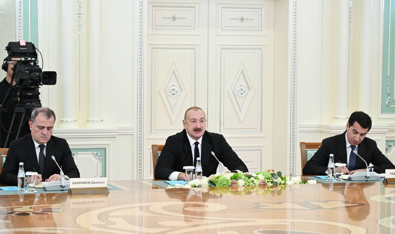 Prezident İlham Əliyev çıxışında iki ölkə arasında iqtisadi əlaqələrin inkişafının müsbət dinamika ilə davam etdiyini qeyd edib. O, Hökumətlərarası Komissiyanın uğurlu iclasını və Birgə İnvestisiya Fondunun fəaliyyətə başlamasını xüsusi qeyd edərək bildirib ki, bu fond çərçivəsində artıq bir sıra layihələrin həyata keçirilmə mərhələsinə qədəm qoyulub.