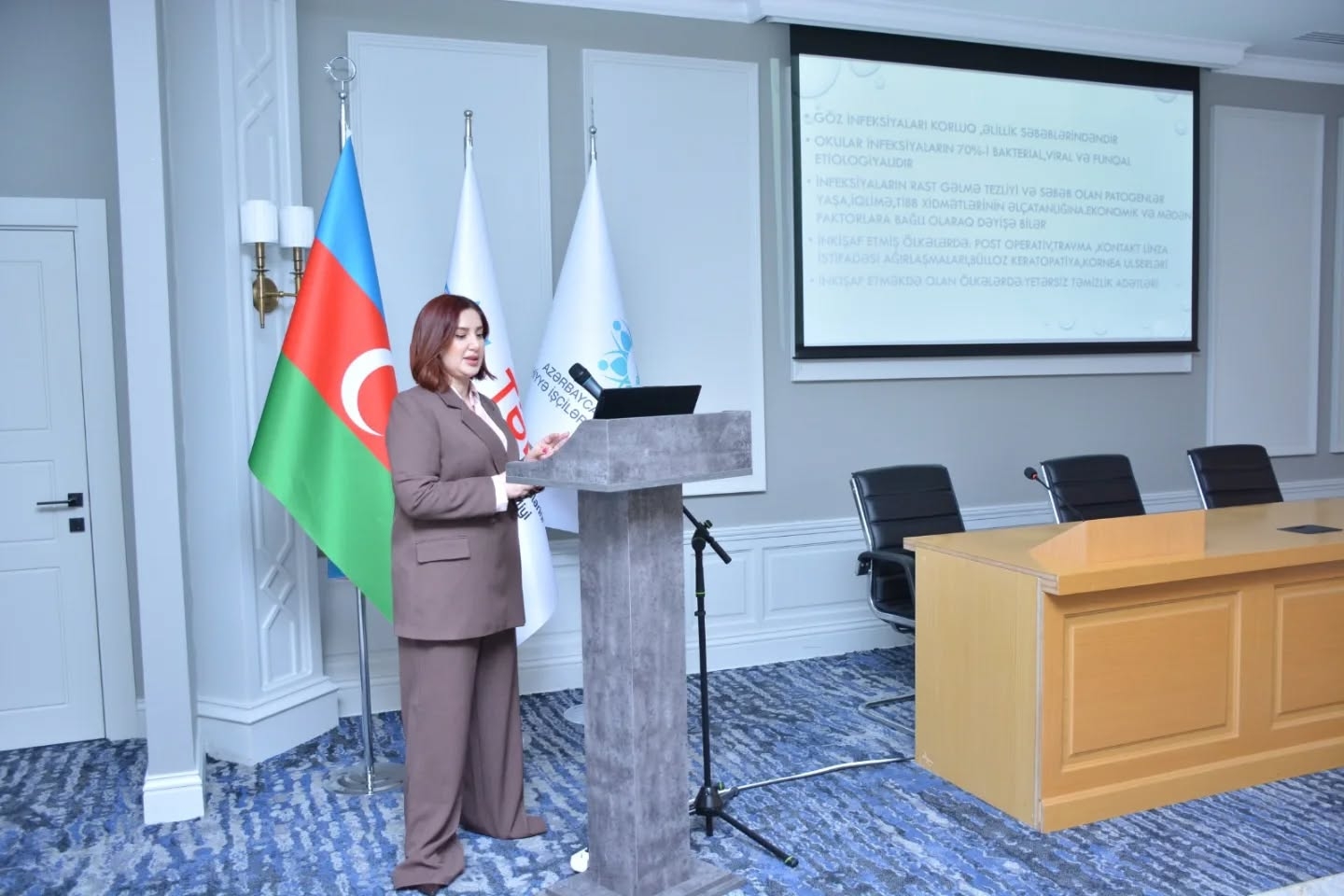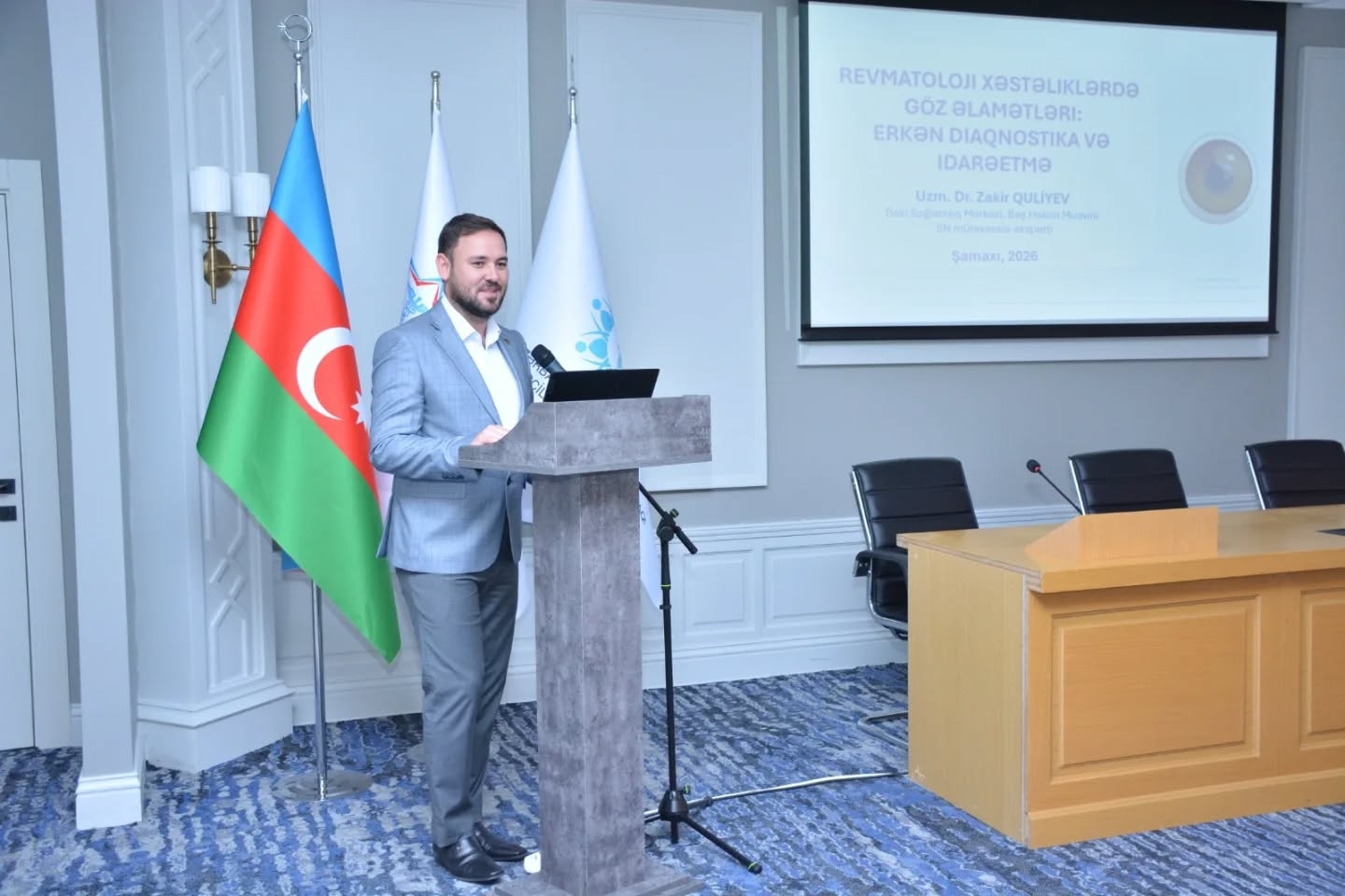 Konfransın elmi hissəsində isə müxtəlif multidissiplinar mövzular üzrə məruzələr təqdim edilib. Uzman Dr. Azər Əhmədov oftalmologiyada müasir yanaşmalar və praktik təcrübələr barədə çıxış edib. Digər mütəxəssislər – Uzman Dr. Mədinə Fərziyeva, Dr. Vüsalə Yaşar və Uzman Dr. Zakir Quliyev pediatrik göz xəstəlikləri, diabetik retinopatiya, infeksion xəstəliklərin göz təzahürləri və revmatoloji xəstəliklərdə göz əlamətlərinin erkən diaqnostikası kimi aktual mövzuları təqdim ediblər.